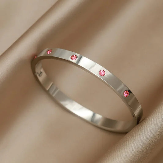 Regular price $31.20 AUDRegular priceUnit price / per$37.70 AUDSale price $31.20 AUDSaleSlim Pavé Crystal Silver Stainless Steel Bangle