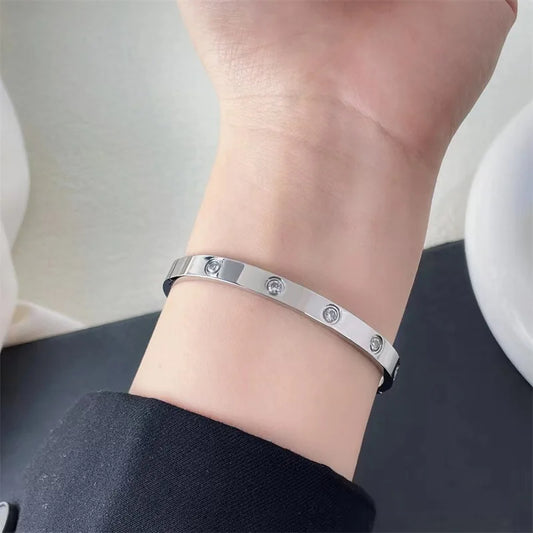 Regular price $32.49 AUDRegular priceUnit price / per$0.00 AUDSale price $32.49 AUDRound Crystal Station Silver Stainless Steel Bangle