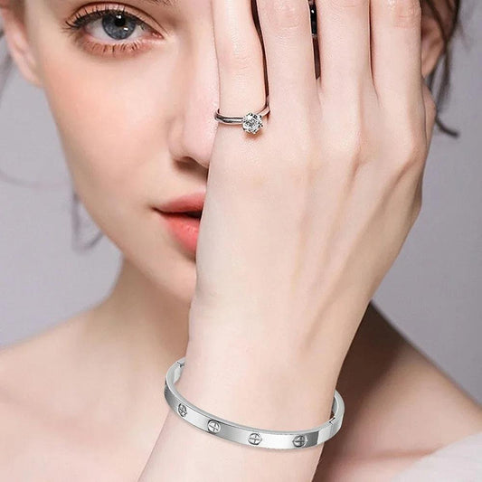 Regular price $31.20 AUDRegular priceUnit price / per$37.70 AUDSale price $31.20 AUDSaleScrew Motif Silver Stainless Steel Bangle